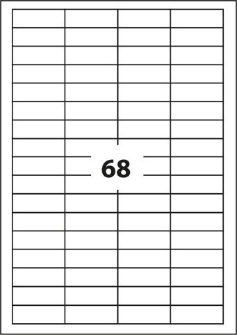 Ideální pro všechny laserové a inkoustové tiskárny, kopírky, barevné laserové tiskárny a barevné kopírky. Šetrné k životnímu prostředí a s certifikátem FSC. Štítky jsou 100% recyklovatelné pomocí odpadního papíru, recyklovatelný kartonový obal. barva: bílá rozměr etikety: 48,5 x 16,9 mm počet etiket na A4: 64 kusy počet etiket v balení: 6400 kusů