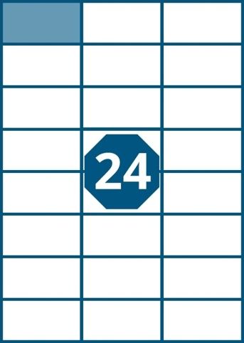 Print etikety se používají jako adresní štítky nebo k označení médií, výrobků, balení apod. Jsou univerzální a vhodné k potisku v laserových a inkoustových tiskárnách i kopírovacích strojích. barva: bílá rozměr etikety: 70,0 x 37,0 mm počet etiket na A4: 24 kusů počet listů v balení: 100 listů počet etiket v balení: 2400 kusů