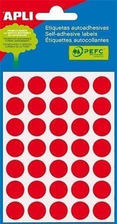 Etikety, červené, kruhové, průměr 13 mm, 175 etiket/balení, APLI