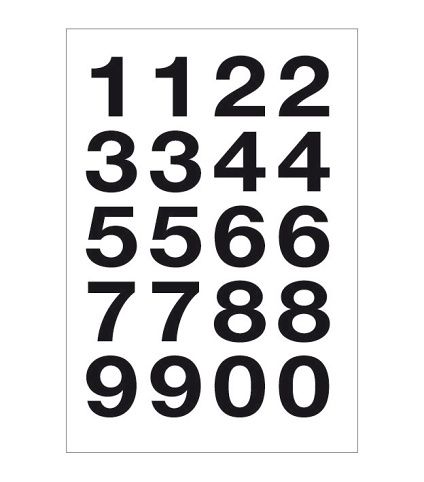 Etikety Čísla velká, 2 archy = 40 štítků, rozměr štítku: 18 x 20 mm, samolepicí, rozměr blistru: 8 x 16 cm, rozměr archu: 8 x 12,5 cm, cenová skupina A