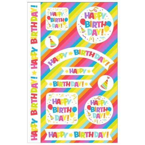 Etikety Happy Birthday, 3 archy, samolepicí, rozměr blistru: 8 x 16 cm, rozměr archu: 8 x 12,5 cm, cenová skupina A