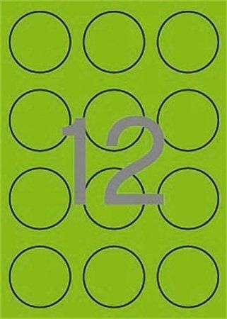 Etikety, kruhové, fluorescentní zelená, průměr 60mm, 240 ks/bal., APLI