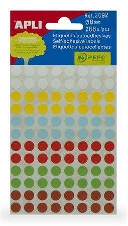 Etikety, různé barvy, kruhové, průměr 8 mm, 288 etiket/balení, APLI