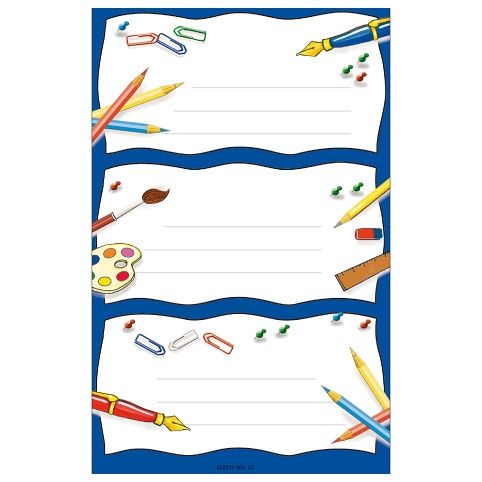 Etikety školní Motiv 4, 9 ks, 3 archy, samolepicí, rozměr blistru: 8 x 16 cm, rozměr archu: 8 x 12,5 cm, cenová skupina A