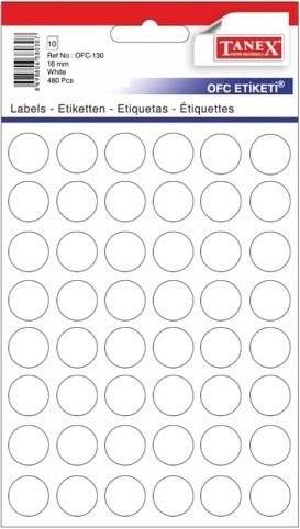 Barva: bílá rozměr etikety: průměr 16 mm aršíků v sáčku: 10 kusů etiket v sáčku: 480 kusů