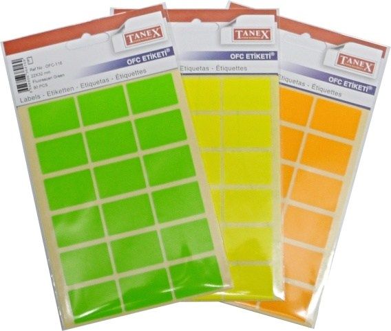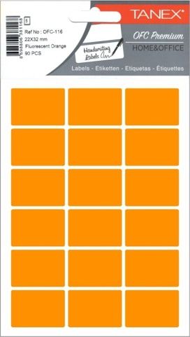 Barva: oranžová rozměr etikety: 22 x 32 mm aršíků v sáčku: 5 kusů etiket v sáčku: 90 kusů