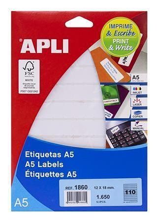 Etikety, zaoblené rohy, 12x18 mm, 1650 ks/bal., A5, APLI