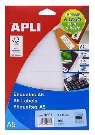Etikety, zaoblené rohy, 12x30 mm, 990 ks/bal., A5, APLI