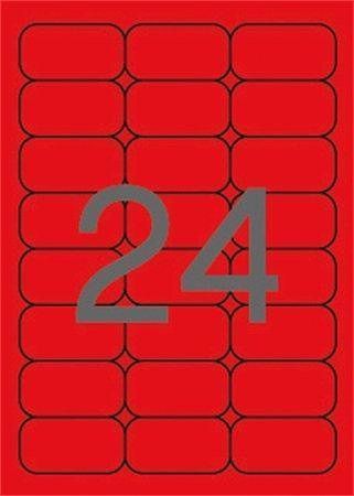Etikety, zaoblené rohy, fluorescentní červená, 64x33,9 mm, 480 ks/bal., APLI