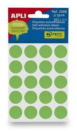 Etikety, zelené, kruhové, průměr 19 mm, 100 etiket/balení, APLI