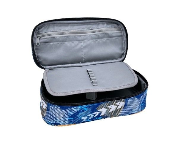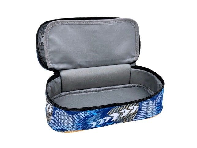 Etue s jednou chlopní v atraktivní modro žluté barvě. Praktická kapsa uzavíratelná na zip obsahuje 2 menší otevřené kapsičky, 1 samostatně uzavíratelnou kapsičku a 5 smyček na psací potřeby. Objemný odkládací prostor pro další školní nezbytnosti. Etue o velikosti 22x10,7x7 cm.