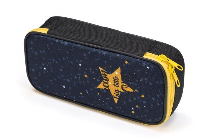 Školní pouzdra nebo takzvané etue jsou ideálním doplňkem pro větší školáky a studenty. Uvnitř pouzdra je větší komora pro uložení tužek a školních potřeb. Vnitřní klopa penálu má na každé straně 5 pevných gumiček. Na vnitřní straně víka je praktická kapsa na zip, na které jsou další 2 malé kapsičky pro uložení drobností.