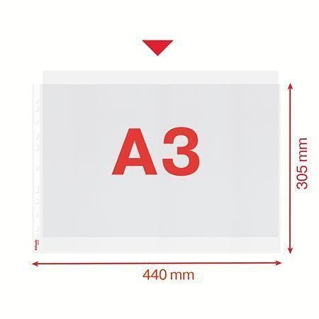 Kvalitní plastové závěsné kapsy pro každodenní použití a běžnou archivaci velkoformátových dokumentů A3 v pákových a kroužkových pořadačích.