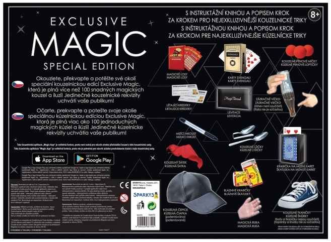 EXKLUZIVNÍ MAGIC sada 100 triků Ohromte, překvapte a pobavte limitovanou edicí Exkluziv. Je nabitá více než 100 kouzly, které se snadno naučíte. Obsahuje iluze a vysoce kvalitní, jedinečné kouzelnické rekvizity, které vás ohromí a stejně tak imysl publika! Věk 8+ ,on line návod,100 kouzel