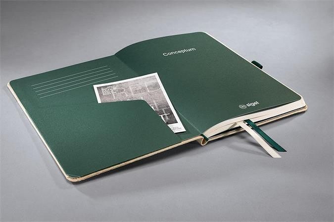 Produktová skupina Conceptum získala řadu mezinárodních ocenění za design. Zápisník je uzavíratelný na gumičku, vybavený poutkem na pero, uvnitř jsou 2 záložky a 2 kapsy.