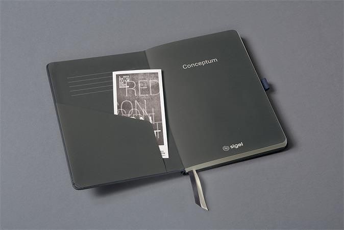 Exkluzivní zápisník Conceptum je uzavíratelný na gumičku, vybavený dvěma záložkami, poutkem na pero a praktickou kapsou na zadní straně. Očíslované strany, posledních 20 stran je perforovaných.