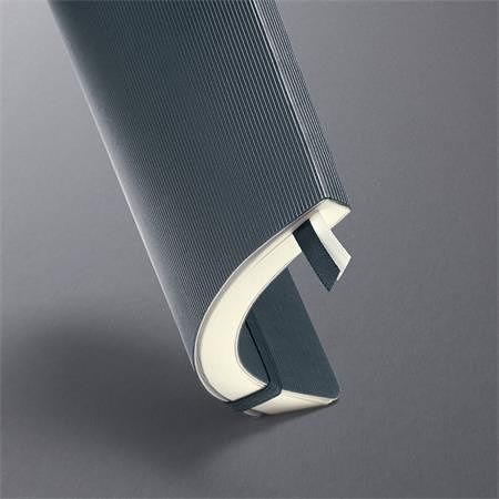 Elegantní zápisník, ideální pro pracovní využití. Desky s drážkovaným povrchem příjemným na dotek. Zápisník je uzavíratelný na gumičku, vybavený poutkem na pero, uvnitř jsou 2 záložky a 2 kapsy.