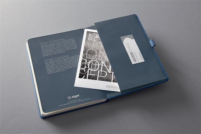 Exkluzivní zápisník Conceptum je uzavíratelný na gumičku, vybavený dvěma záložkami, poutkem na pero a praktickou kapsou na zadní straně. Očíslované strany, posledních 20 stran je perforovaných.