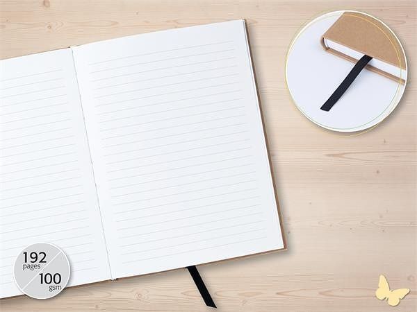 Exkluzivní zápisník vysoké kvality. Zápisník má tvrdé, matné desky s lesklými detaily.
