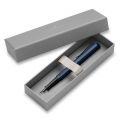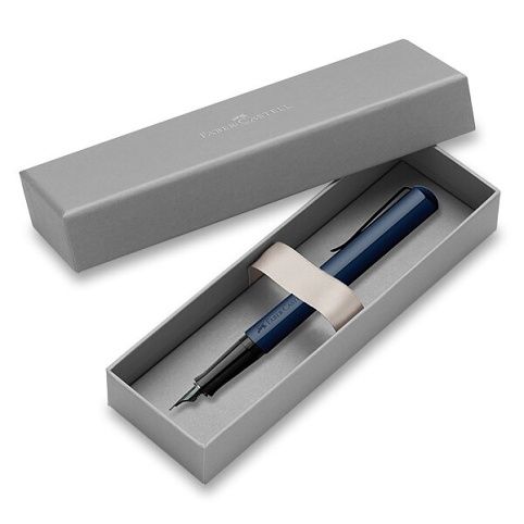 Plnicí pero Faber-Castell Hexo Blue má šestihranné tělo a víčko z eloxovaného hliníku s kovovým klipem. Hrot z ušlechtilé nerezové oceli je potažený odolnou matně černou vrstvou.