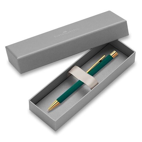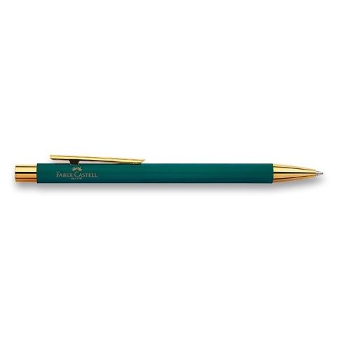 Kuličkové peroFaber-Castell Neo Slim Rainforest LE má štíhlé kovové tělo pokryté tmavě zelenou lakovanou vrstvou v kombinaci s doplňky v barvě zlata.