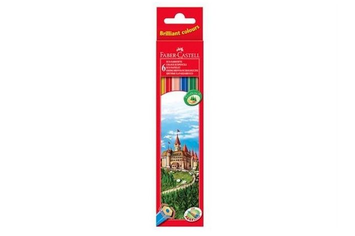 Šestihranné pastelky firmy Faber Castell, které v balení obsahují 6 základních barev.