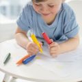 Plastové pastelky s ergonomickou oblastí úchopu do dlaně, dají se snadno gumovat.