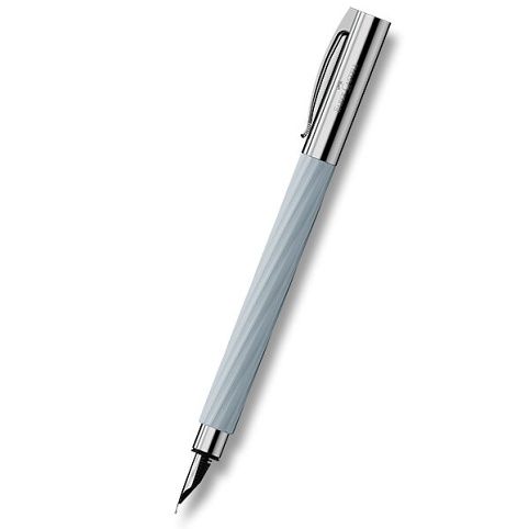 Vysoce kvalitní plnící pero Faber-Castell Ambition Italic Ice Blue s modrým lakováním. Víčko, rukojeť a otočný uzávěr je z chromovaného leštěného kovu.