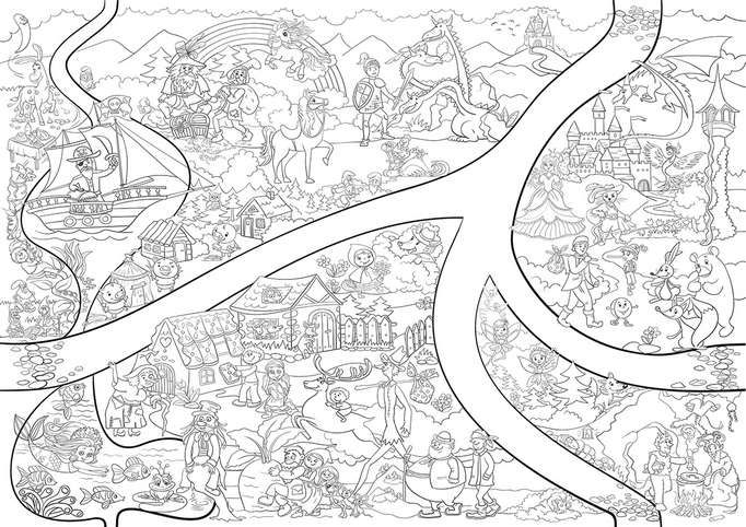 Velkoformátové omalovánky, které jsou vhodné pro děti i dospělé v jakémkoliv věku. Omalovánku může vybarvovat každý sám nebo ve skupině a zvolit můžete pastelky, voskovky nebo i vodové barvy! Při zakoupení všech 6 typů omalovánky, je lze spojit do jednoho velkého díla propojeného cestou.Omalovánky rozvíjí fantazii, kreativitu a kompoziční představivost. U dětí rozvíjí jemnou motoriku ruky, orientaci v prostoru a celé hodiny se můžete věnovat popisů věcí a situací, které se na obrázku dějí.