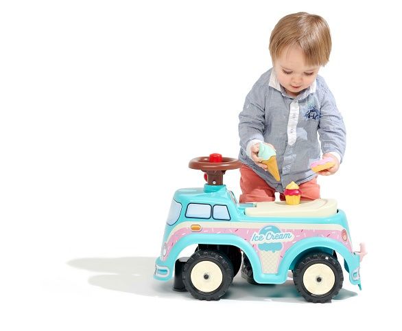otevírací sedadlo, volant s klaksonem, příslušenství (2x zmrzlina, 1x cupcake, 1x donut), velikost 55 x 30 x 35 cm, nastavitelné sedlo: ne, výška sedla: 22 cm, nosnost: 25 kg