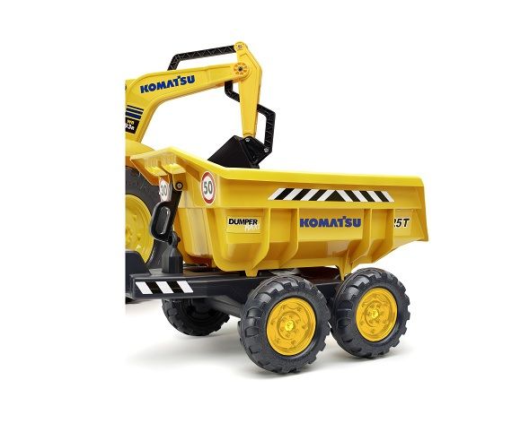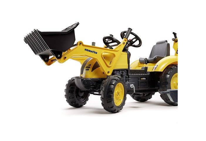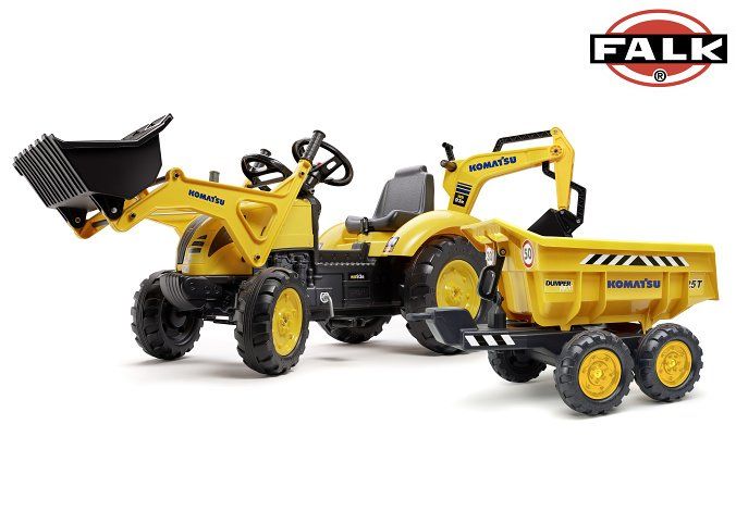 Falk Šlapací traktor 2086W Komatsu s bagrem a Maxi vyklápěcím přívěsem - žlutý