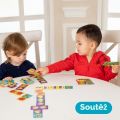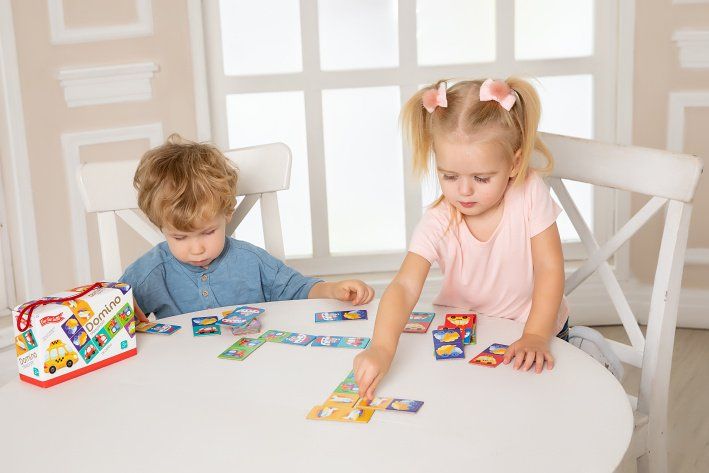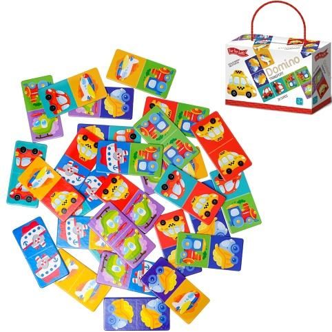 Far Far Land Domino s obrázky doprava. Balení obsahuje 28 karet. Hra pro 2-5 hráčů. Při hře 2 hráčů každý hráč dostane 7 karet. Při hře více hráčů každý dostane 5 karet. Zbývající karty jsou v "banku. “ Hráč, který má "dvojitou" kartu (kartu s totožnými obrázky), hraje první. Pokud žádný z hráčů nemá dvojitou kartu, každý hráč si vezme jednu kartu z banku. Pokud má více hráčů dvojitou kartu, začíná ten mladší. Pro rozehrání prvního tahu si však můžete vymyslet svá vlastní pravidla. Hráči se střídají a jeden za druhým přikládají karty ze své ruky ke kartám na hrací ploše se shodným obrázkem. Pokud hráč nemá shodný obrázek, musí si vzít kartu z banku. Hráč, který položí svou poslední kartu na hrací plochu, vyhrává. Pokud všichni hráči mají v ruce karty, ale není možné hrát dál, hra je ukončena "blokem" a vyhrává hráč, který má v ruce nejmenší množství karet.