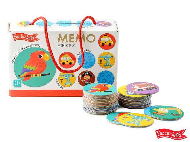 Far Far Land Pexeso kulaté pro kluky. Balení obsahuje 28 kulatých kartiček s obrázky.