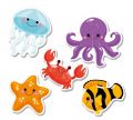 Puzzle obrysové pro děti, motiv mořská zvířátka. Balení obsahuje 5 puzzle obrázků, které se skládají ze 2 - 4 dílků.