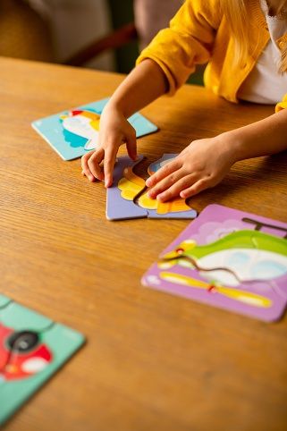 Far Far Land Puzzle ZigZag vlnky, motiv dopravní prostředky. Balení obsahuje 6 puzzle obrázků.