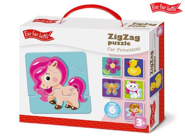 Far Far Land Puzzle ZigZag vlnky, motivy pro princezny. Balení obsahuje 6 puzzle obrázků.