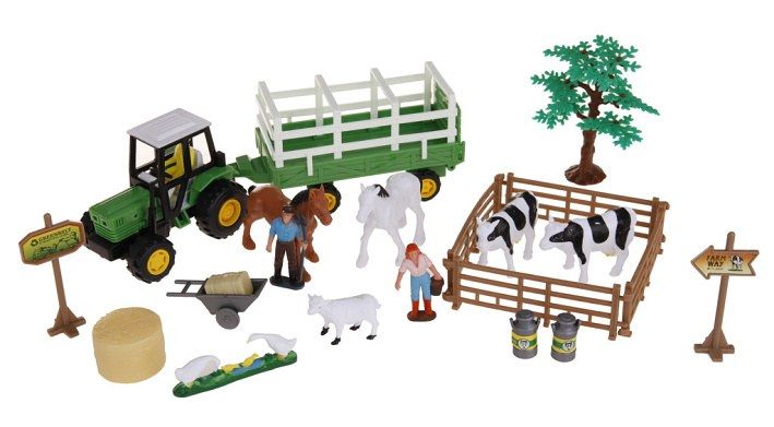 Farmářský set v kufříku. Kufřík obsahuje traktor s přívěsem a