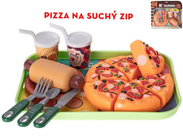 Fast food pizza na suchý zip, hotdog a nápoje 2ks s podnosem 26x19cm na kartě