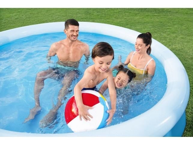 Bazén Bestway (vodní kapacita 1880 litrů) je samonosný rodinný bazén. Stačí pouze nafouknout horní prstenec a bazén napustit. Stoupající sloupec vody bazén sám postaví. Díky své pružné konstrukci je bazén vhodný pro rodiny s dětmi. Upoutá svou jednoduchou montáží a nízkou cenou. Obsah baleníbazénová fólieBazén umožňuje připojení filtrace (filtrace, hadice ani průchodky stěnou nejsou součástí balení)