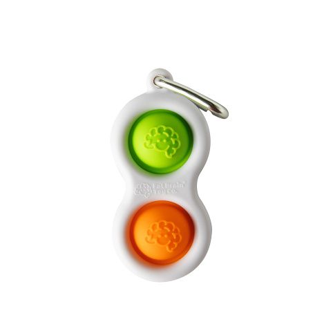 Fat Brain Klíčenka s mačkacími polštářky Simpl Dimpl. Tuba 40 ks. 4 varianty - zeleno-oranžová, modro-zelená, modro-růžová, zeleno-fialová.