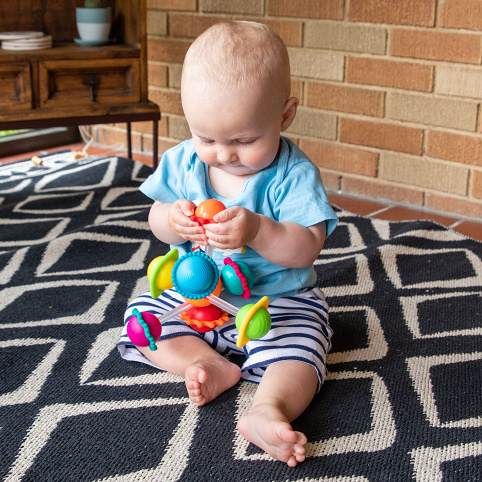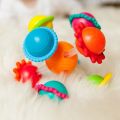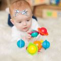 Smyslová hračka Wimzle má funkce a struktury, které umožní dětem prozkoumat rukojeťmi zajímavé tvary na každém míčku.