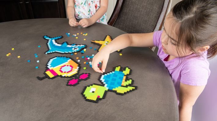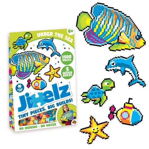 Fat Brain Pod hladinou moře Jixelz Pixel art 1500. Plastové puzzle ve stylu pixel art. Balení obsahuje 1500 dílků na složení 5 obrázků. Je nutné si vybrat, jestli složit hlavní, velký obrazec, nebo několik menších obrazců. V balení není dostatek dílků na složení všech obrazců zároveň. Puzzle jsou přesně řezané, a proto jsou spoje velmi pevné. Plánek na složení v měřítku 1:1 je součástí balení. Z dílků můžete složit i libovolný obrázek.