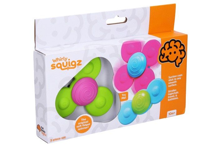 WhirlySquigz - spinnery pro nejmenší z měkkého materiálu. S přísavkami pro upevnění na různé povrchy.
