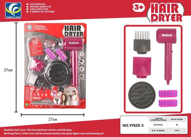 Fén s příslušenstvím. 2xAA baterie nejsou součástí.