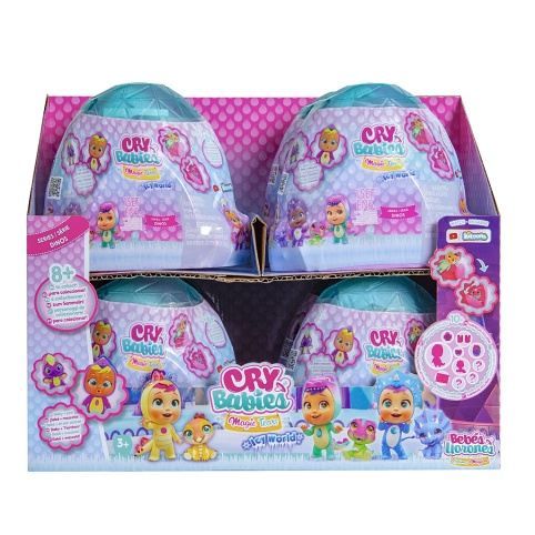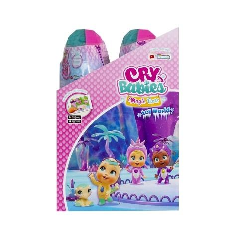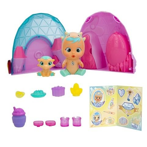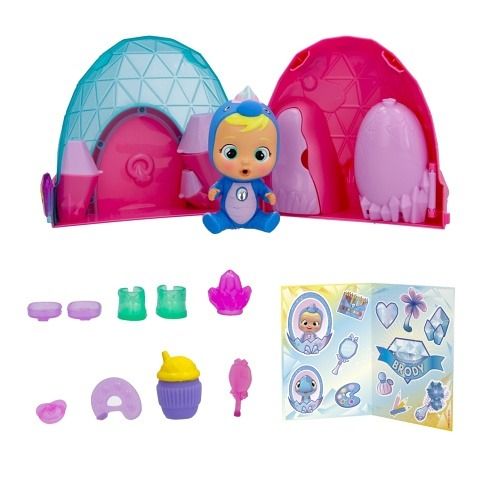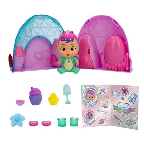 „Řada Cry Babies Magic Tears ICY WORLD DINOSAUŘI obsahuje až 10+ překvapení a doplňků! Obsahuje: kojeneckou láhev, dudlík, táborák, pár bot, pár bruslí, kus oblečení, dva jedinečné doplňky a arch se samolepkami Sbírejte více než 8 panenek! Navíc v každém balení jejich odpovídající dinosauří mazlíček! Použijte slzy své postavy Magic Tears na vajíčko a sledujte, jak se malý dinosaurus líhne! Roní skutečné slzy! Napojte je jejich kojeneckou lahví, zmáčkněte jejich břicho a uvidíte, jak pláčou! Objevte animovaný seriál Cry Babies Magic Tears na YouTube a Netflixu!“