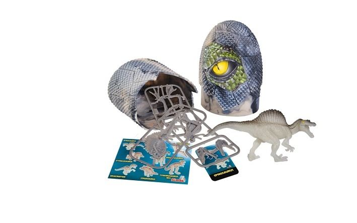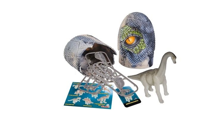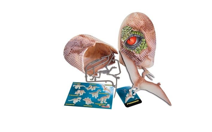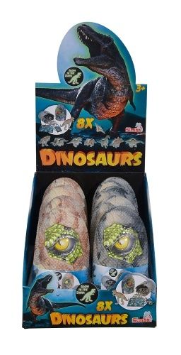 V každém vejci je schována figurka dinosaura o velikosti 10cm, skládačka kostry dinosaura a sběratelská kartička, dinosaurus ve tmě svítí, 8 druhů, display 8 ks.