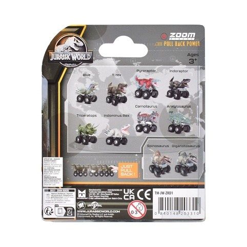 Připravte se na prehistorickou jízdu s rychlými a zábavnými dinosaury Zoom Riders ze světa Jurassic World! Každý malý dinosaurus je vybaven kolečky a při puštění se rozjede vpřed, čímž přináší napínavou hru plnou pohybu. Figurky jsou inspirovány populární filmovou sérií, mají detailní zpracování a atraktivní design. Ideální pro malé fanoušky dinosaurů a sběratele.