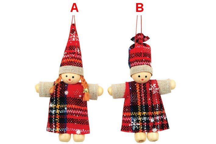 Figurka dřevěná závěsná,károvaný obleček 9cm 2 druhy