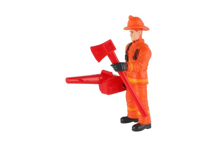 Figurka hasič v obleku s příslušenstvím je okamžitě připravena k zásahu díky své ochranné výstroji, kterou tvoří uniforma, přilba a rukavice.
