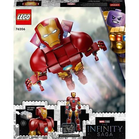 Tato realistická replika Iron Mana navržená podle marvelovského filmu Avengers: Age of Ultron je plně kloubová, takže děti mohou figurkou různě pohybovat a polohovat ji, ať už v bitvách, nebo na strhujících misích. Světelná kostka ovládaná tlačítkem zesiluje realistický dojem, jelikož osvětluje obloukový reaktor v Iron Manově hrudi. Pokud zrovna Iron Man nebude zachraňovat vesmír, vynikne na výstavce. Jeho součástí je i odnímatelná cedulka s informacemi o kultovním obrněném Avengerovi. Bezplatná aplikace s návody na stavění LEGO obsahuje doplňkové digitální pokyny, s jejichž pomocí mohou děti přibližovat, otáčet a vizualizovat své modely. Nechybí ani skutečný pracovní postup, který malým stavitelům pomůže pustit se směle do díla.